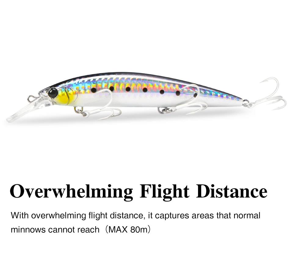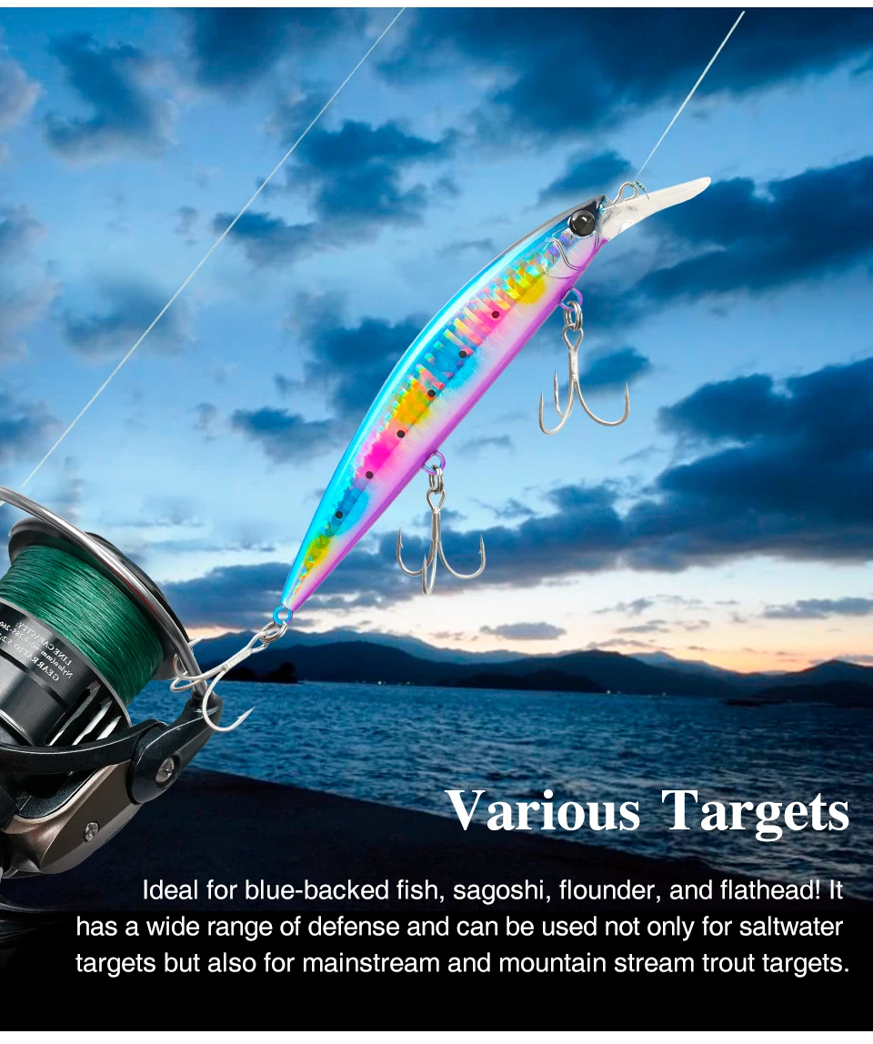 Seu acabamento premium com cores vibrantes imita perfeitamente um peixe forrageiro, tornando a isca altamente eficiente em diversas condições de pesca.