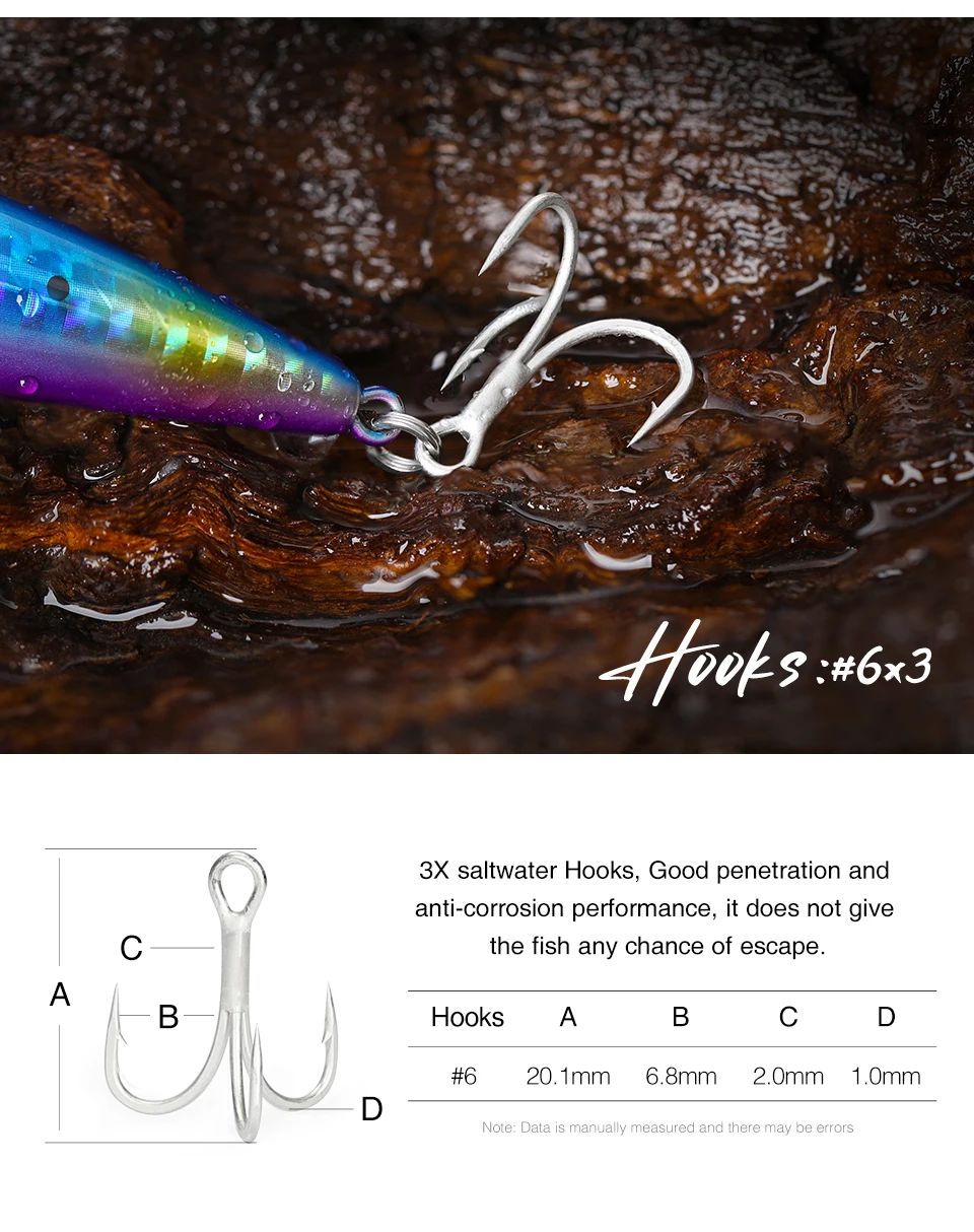 3X ganchos de água salgada.Com boa penetração e desempenho anticorrosivo, não dá aos peixes nenhuma chance de escapar.
