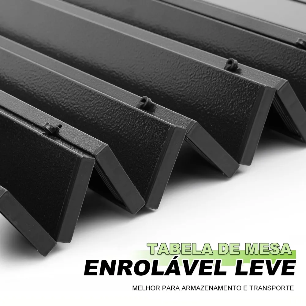 3.Fácil de dobrar e transportar: O design dobrável do tampo da mesa e das pernas facilita a montagem e a desmontagem em minutos. Não são necessárias ferramentas. O tamanho da embalagem dobrada é de apenas 65*22*17cm, fácil de transportar.