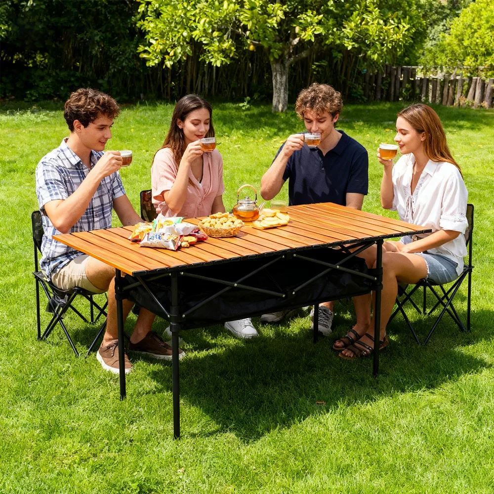 5.Opções de uso versáteis: A mesa dobrável portátil para acampamento em uma bolsa é perfeita para piqueniques, churrascos, acampamentos, caminhadas, pesca, jardins, festas, passeios de caravana, praias ou até mesmo em casa como mesa de jogos, mesa de centro, mesa de lanches ou mesa de jantar ao ar livre.